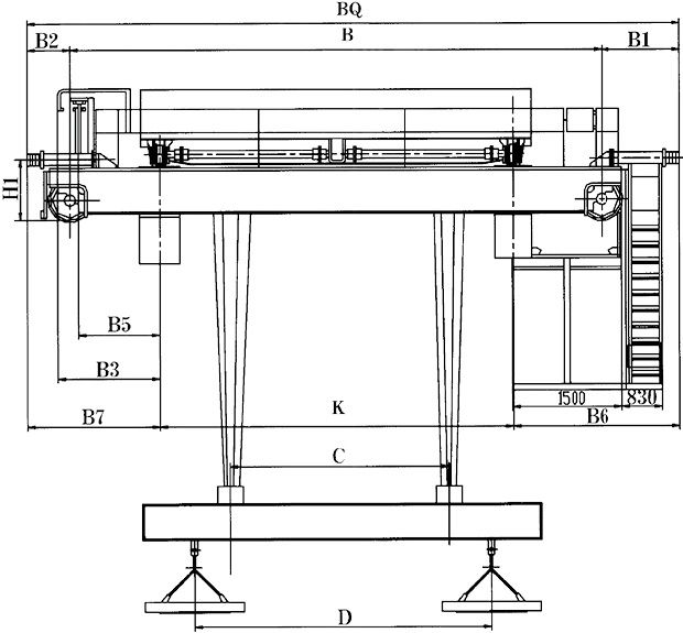 4、挂梁上下吊点距C、D可根据用户要求确定,表中尺寸仅供参考。