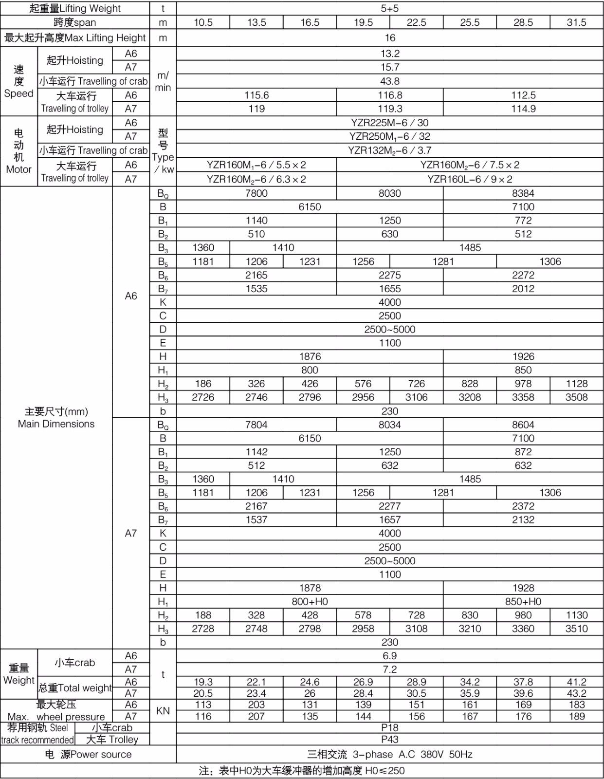 2、起重量包括挂梁重量。