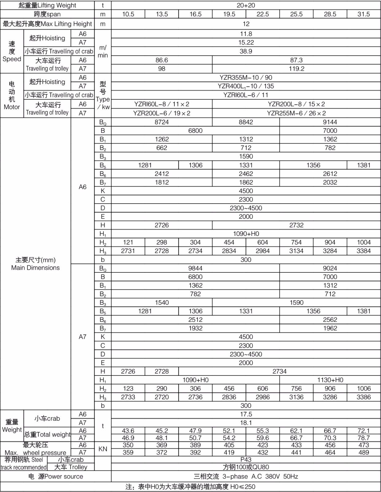 3、起重机总重不包括挂梁重量。